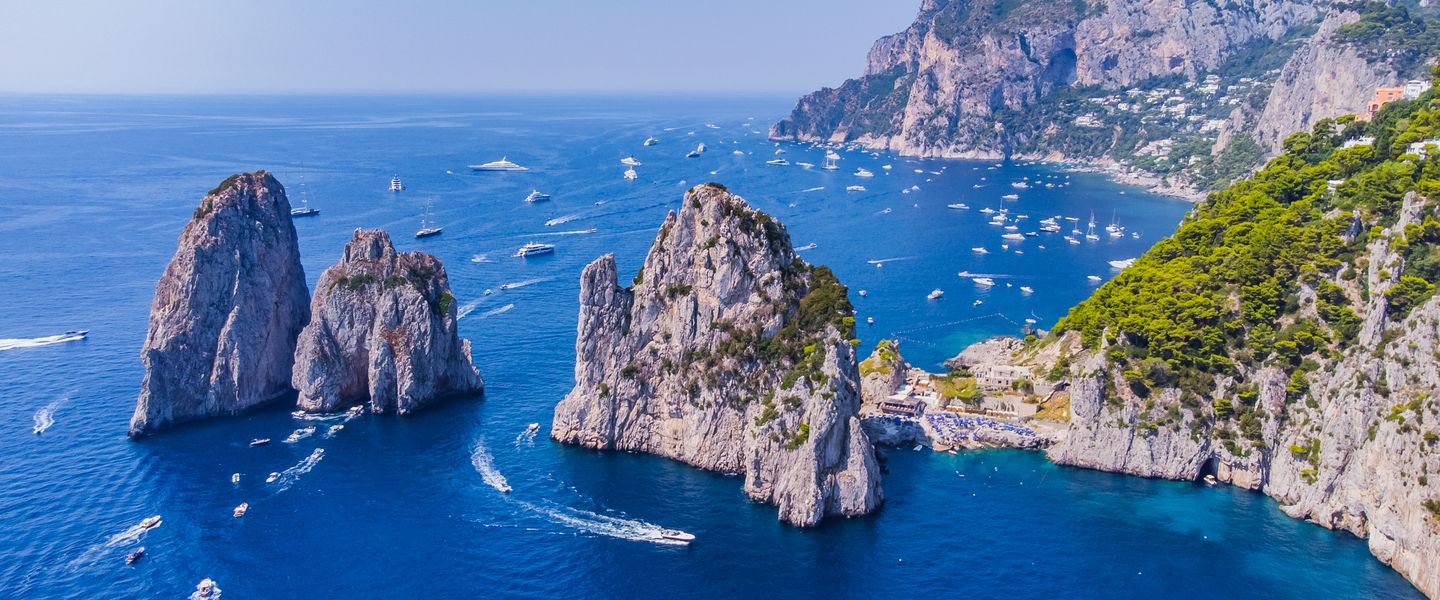 Capri liegt im Tyrrhenischen Meer, etwa 5 Kilometer von der italienischen Küste entfernt und ist Teil der Region Kampanien. Die Insel hat eine Fläche von etwa 10,4 Quadratkilometern und ist von steilen Klippen und malerischen Buchten umgeben. Capri ist gut mit Fähren und Schnellbooten von Neapel, Sorrent und anderen Küstenorten erreichbar, was es zu einem beliebten Ziel für Tagesausflüge und Kurzurlaube macht. Die geografische Lage macht Capri auch zu einem idealen Ausgangspunkt für Erkundungen der umliegenden Inseln, wie Ischia und Procida, sowie der beeindruckenden Amalfiküste. Die Kombination aus der spektakulären Landschaft, der reichen Geschichte und der luxuriösen Atmosphäre macht Capri zu einem unvergesslichen Erlebnis für alle, die die Schönheit und den Charme dieser einzigartigen Insel entdecken möchten.