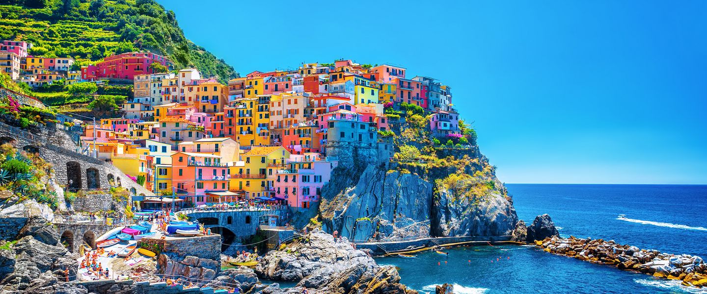 Die unberührte Landschaft der Cinque Terre ist von seltener Schönheit. Fünf malerische, verträumte Dörfer an der ligurischen Küste. Farbige Häuser an steilen Hängen, kleine Plätze mit bunten Booten, Treppenwege, Torbögen - eine der eindrucksvollsten Landstriche der Welt.