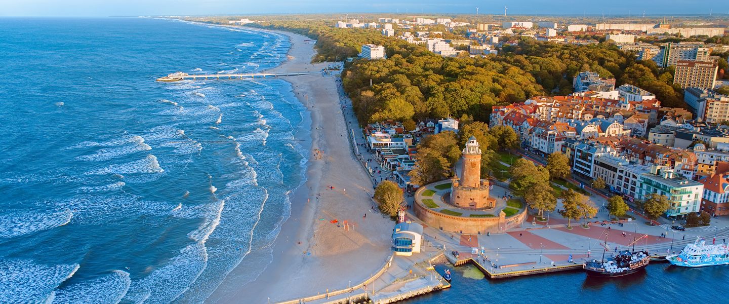 Zu den touristischen Schwerpunkten in Kolberg gehört der Strand von Kolberg, der mit feinem Sand und flachem Wasser ideal für Familien ist. Der Strand ist von einer schönen Promenade gesäumt, die zahlreiche Restaurants, Cafés und Geschäfte bietet, die eine lebendige Atmosphäre schaffen.