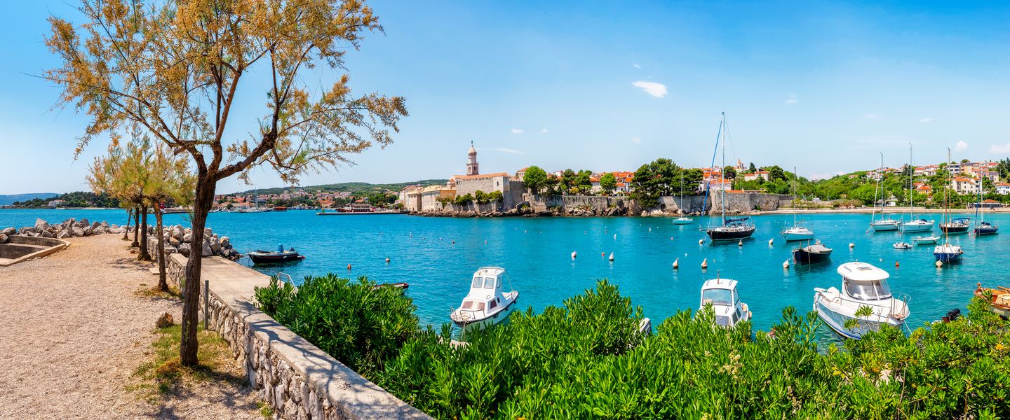 Die Insel Krk liegt in der Kvarner Bucht in Kroatien und ist durch eine Brücke mit dem Festland verbunden, was sie leicht erreichbar macht. Geografisch befindet sich die Insel in der Nähe der Städte Rijeka und Opatija, etwa 30 Kilometer von der kroatischen Küste entfernt. Die Lage in der Kvarner Bucht bietet eine Vielzahl von Möglichkeiten für Ausflüge zu benachbarten Inseln und Küstenorten. Die Insel Krk ist von einer malerischen Küstenlinie umgeben, die von zahlreichen Buchten und Stränden geprägt ist, die sich ideal für Schwimmer und Sonnenanbeter eignen. Die Kombination aus atemberaubenden Ausblicken, reicher Natur und der Möglichkeit, die kroatische Kultur hautnah zu erleben, macht die Insel Krk zu einem unvergesslichen Erlebnis für alle, die diese einzigartige Destination entdecken möchten.
