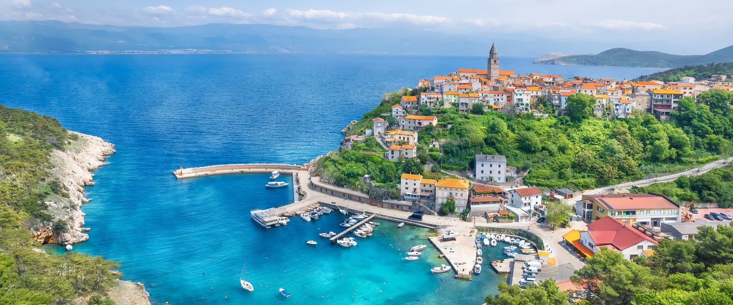 Die Insel Krk liegt in der Kvarner Bucht in Kroatien und ist durch eine Brücke mit dem Festland verbunden, was sie leicht erreichbar macht. Geografisch befindet sich die Insel in der Nähe der Städte Rijeka und Opatija, etwa 30 Kilometer von der kroatischen Küste entfernt. Die Lage in der Kvarner Bucht bietet eine Vielzahl von Möglichkeiten für Ausflüge zu benachbarten Inseln und Küstenorten. Die Insel Krk ist von einer malerischen Küstenlinie umgeben, die von zahlreichen Buchten und Stränden geprägt ist, die sich ideal für Schwimmer und Sonnenanbeter eignen. Die Kombination aus atemberaubenden Ausblicken, reicher Natur und der Möglichkeit, die kroatische Kultur hautnah zu erleben, macht die Insel Krk zu einem unvergesslichen Erlebnis für alle, die diese einzigartige Destination entdecken möchten.