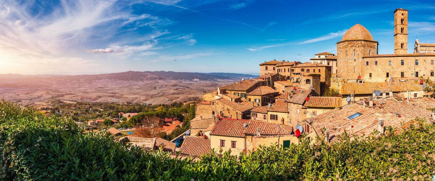 Volterra bietet eine Vielzahl von Sehenswürdigkeiten, die sowohl historisch als auch kulturell von Bedeutung sind. Die Piazza dei Priori, der zentrale Platz der Stadt, ist von beeindruckenden mittelalterlichen Gebäuden umgeben, darunter der Palazzo dei Priori, der älteste Rathaus der Toskana. Die Kathedrale von Volterra, die im romanischen Stil erbaut wurde, beeindruckt mit ihrem kunstvollen Innenraum und den schönen Fresken. Ein weiteres Highlight ist das Etruskische Museum, das eine bedeutende Sammlung von etruskischen Artefakten beherbergt und die Geschichte der Stadt und ihrer frühen Bewohner dokumentiert. Die Stadtmauern von Volterra, die aus der etruskischen Zeit stammen, sind ebenfalls einen Besuch wert und bieten einen herrlichen Blick auf die umliegende Landschaft. Die Kombination aus reicher Geschichte, beeindruckender Architektur und einer lebendigen Kultur macht Volterra zu einem einzigartigen Ziel für Besucher, die die Schönheit und das Erbe der Toskana entdecken möchten.